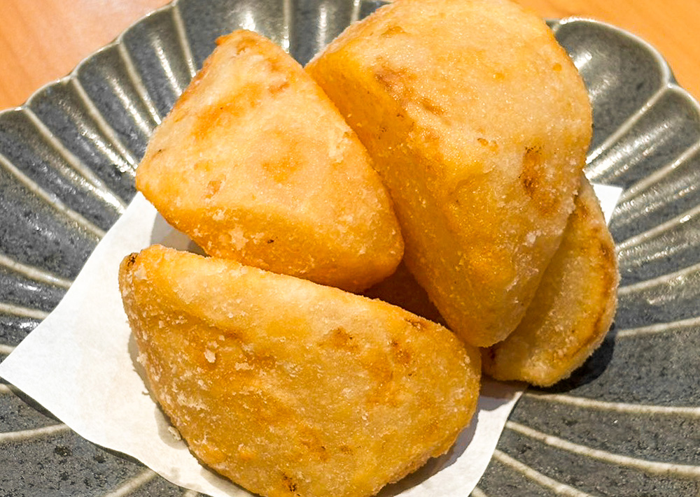 フード / 名物 / 揚げ物 貝出汁の大根唐揚げ パリッとじゅわっとが楽しい逸品600円(税込)※変更がある場合がございます。貝出汁をしっかりと 染み込ませた大根を 「パリッ」と揚げた逸品。 おすすめのポイント「じゅわっ」と広がる貝出汁米粉と片栗粉をブレンドパリッ!とした食感と歯ごたえ柚子胡椒で更に美味しく!萩の柚子屋本舗の柚子胡椒使用。 そのほかの逸品藁焼き刺し身おもしろきのポテサラ お品書きに戻る