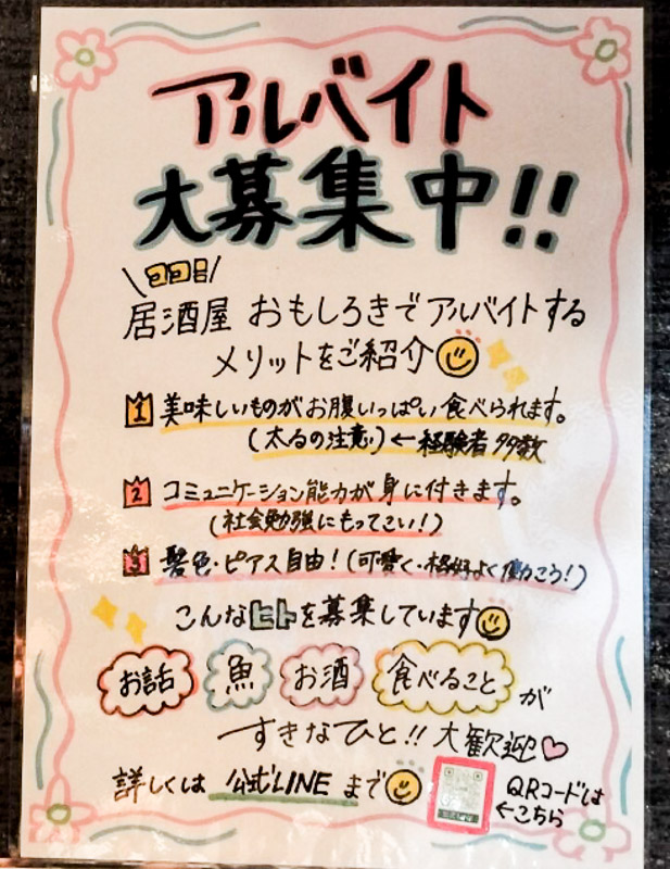 おもしろきはフルオープンのお店なのでコミュニケーション能力が身につきます!特に今からの時代を生き抜くのに必須な能力です。